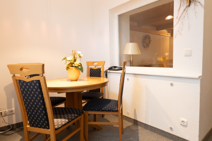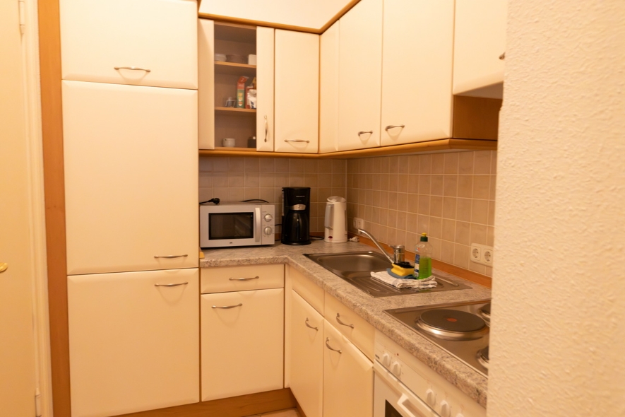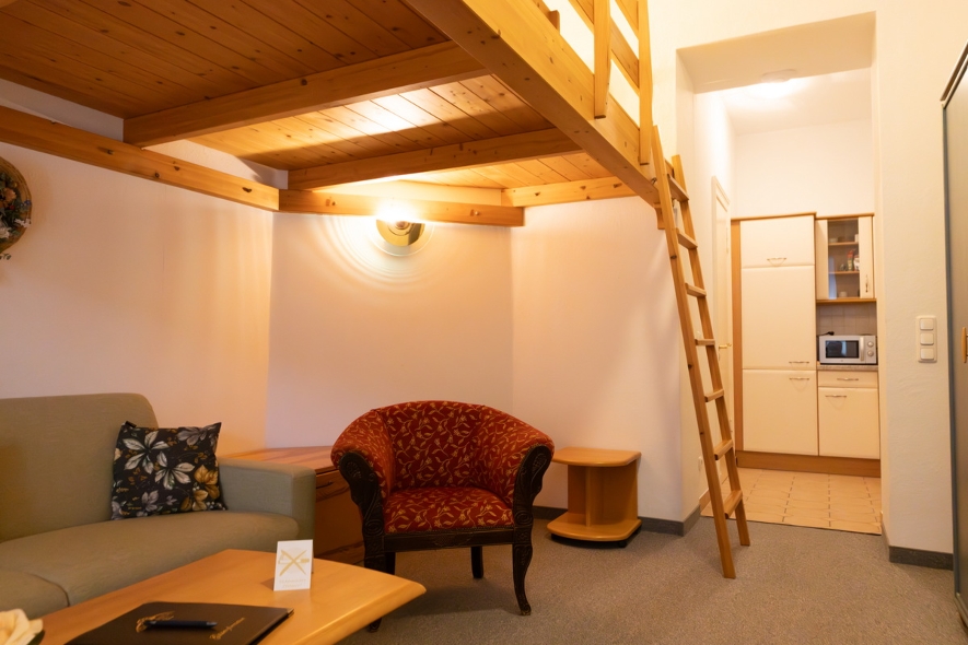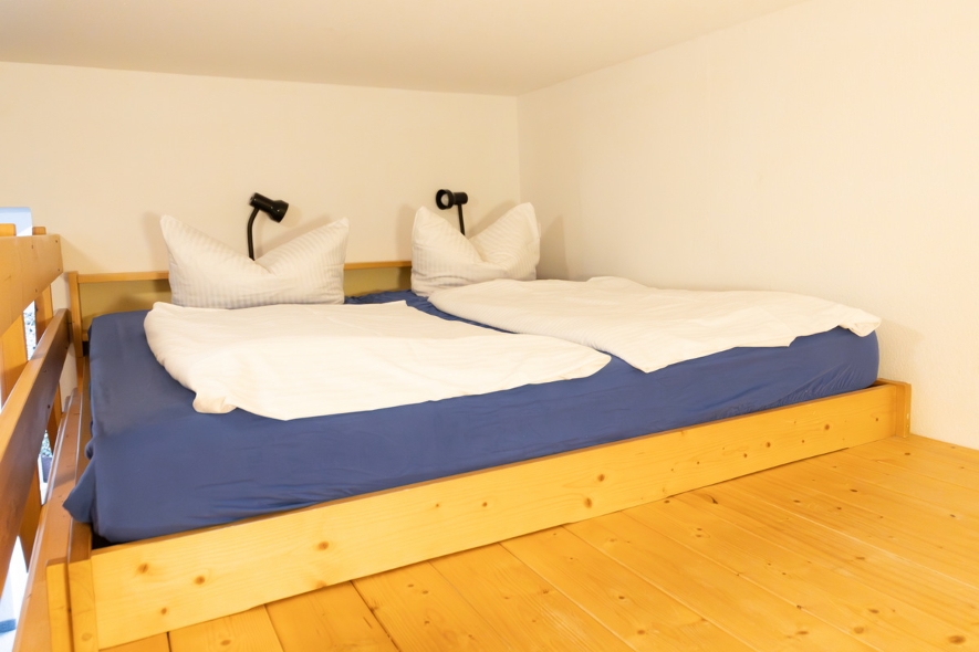 Diese Apartment mit ca. 28 qm ist liebevoll eingerichtet und besitzt eine komplette Küche sowie ein Hochbett. Ebenerdig ist das Schlafsofa durch einfache Griffe in ein komfortables Doppelbett zu verwandeln. Ein großzügige Dusche/WC mit Fön sowie ein Flachbild-TV runden die Ausstattung dieses Apartments ab. Das Appartment wird angeboten ohne Frühstück. Die Kosten für die Endreinigung sind im Zimmerpreis bereits enthalten.